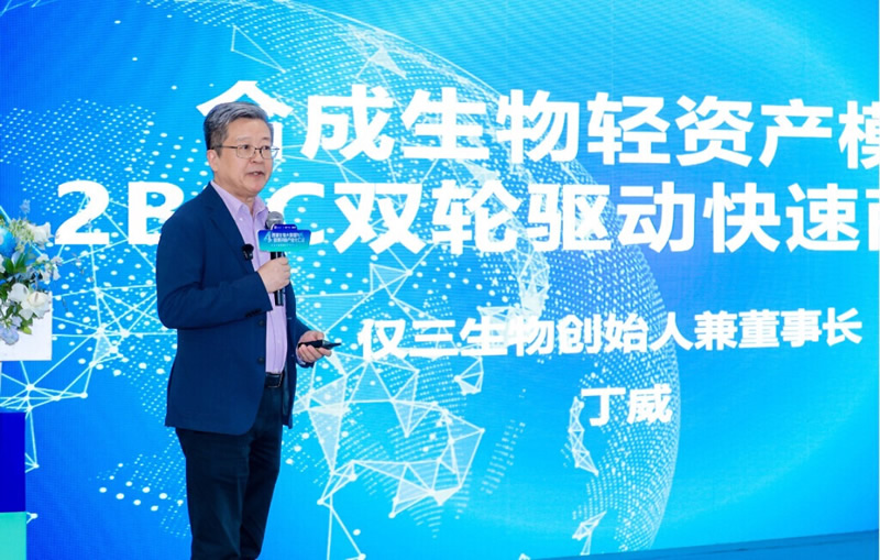4月12日,仅三生物创始人兼董事长丁威在第四届西湖大学营养论坛发言。主办方供图