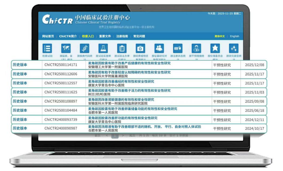 [3] 仅三生物针对轻度认知障碍、肾脏健康、卵巢健康等方向的研究已在“中国临床试验注册中心”完成备案(如ChiCTR2500112606、ChiCTR2500104484、ChiCTR2500108897、ChiCTR2500111625等)