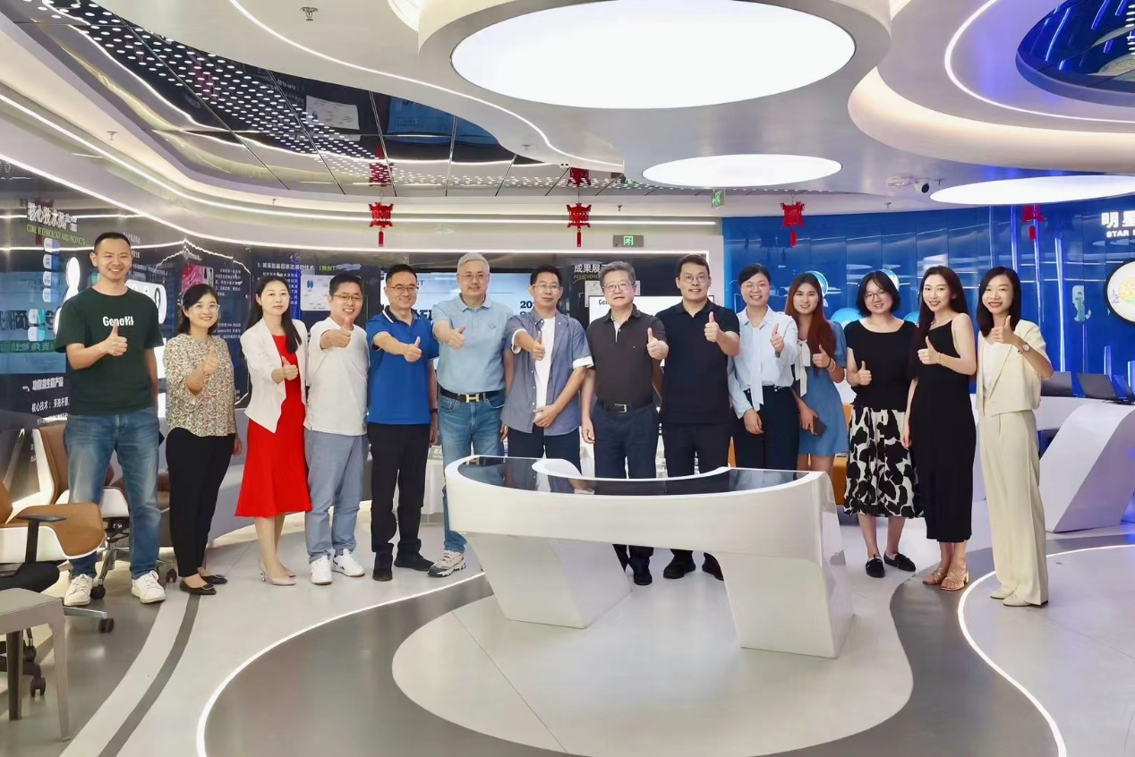 仅三生物创始人兼董事长丁威与到访嘉宾参观仅三生物实验室